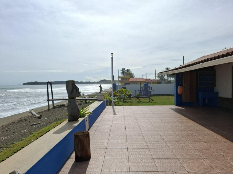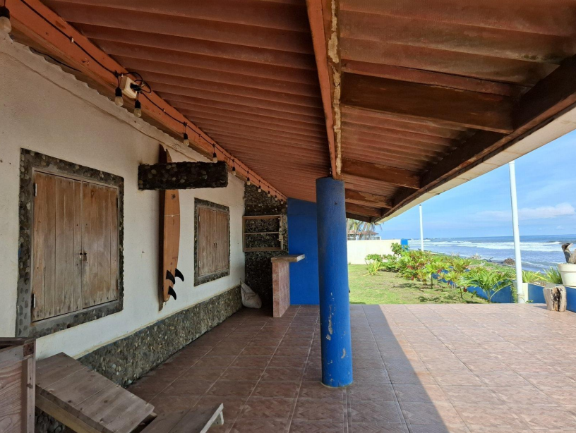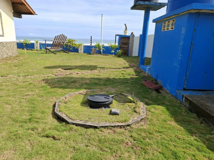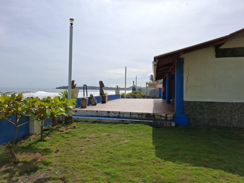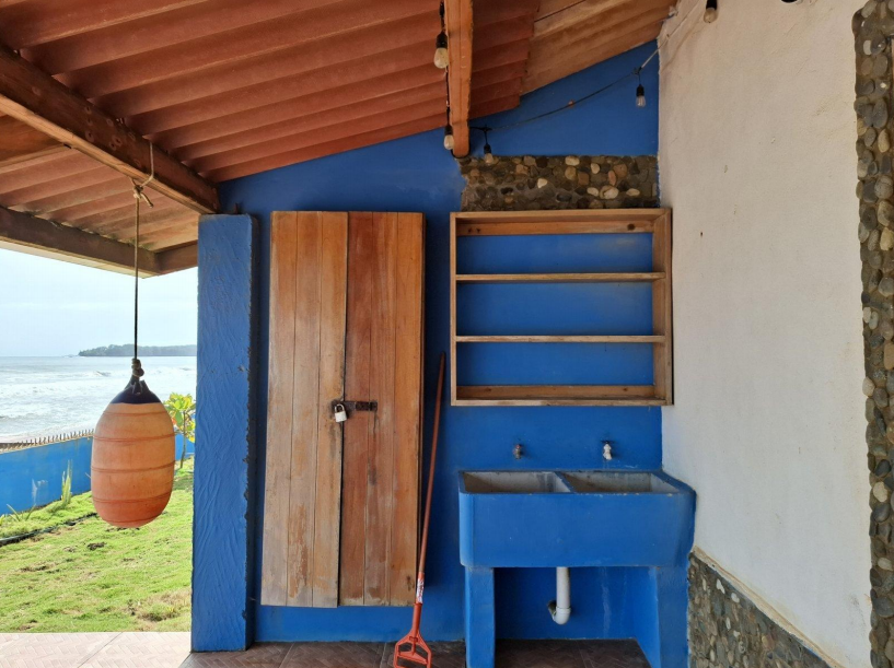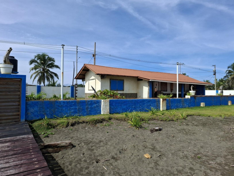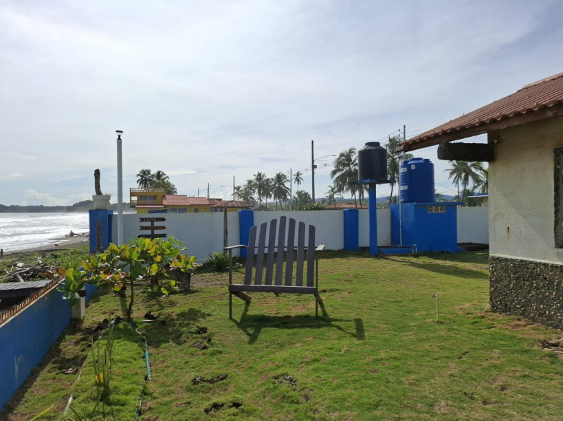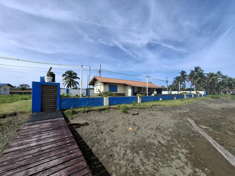 Se vende casa frente al mar en Cuango, Danta Isabel de Colón. Terreno de 918m2, área de construcción 66m2, con muro perimetrales de concreto, 2 habitaciones, cocina comedor, terraza techada, lavandería, depósito y tanques de reserva (elevados y soterrados).